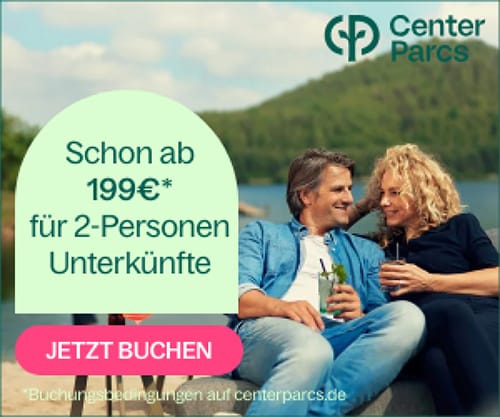 Tipp: Dieser Deal wird präsentiert von unserer Partnerseite ReiseHugo.de – dem Reiseschnäppchenblog – dort findest Du täglich die besten Reiseangebote und Urlaubs-Deals. Hier gelangst Du zum ausführlichen Beitrag: Center Parcs: Zeit zu zweit – Urlaub ab 199€