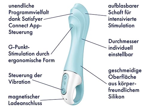 - Doppelte Stimulation: Kombiniert kraftvolle Vibrationen (12 Programme) mit einem aufpumpbaren Schaft (bis zu +15 mm Durchmesser) – beide Funktionen separat steuerbar