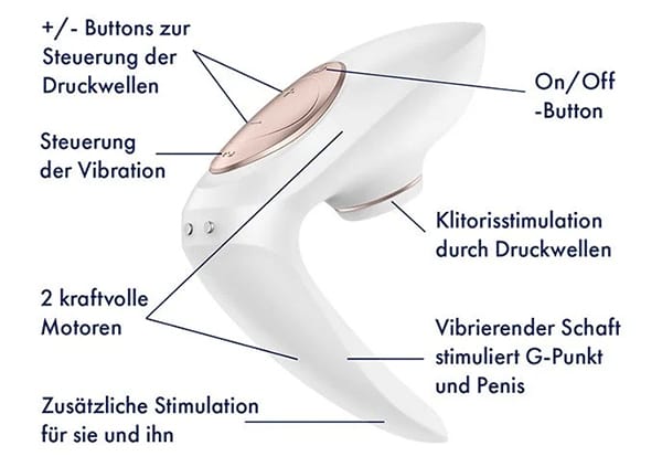 • Intensive Doppelstimulation: Zeitgleiche vaginale Vibration und klitorale Druckwellen für beide Partner – 10 Vibrationsprogramme + 11 Druckwellenstufen