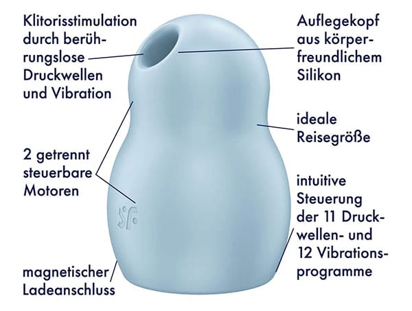 - Intensive Stimulation: 11 Druckwellenintensitäten & 12 Vibrationsprogramme, getrennt steuerbar.