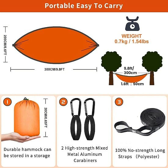 Eterbiz Hängematte (Ultraleicht, 260X140cm, 250kg Tragelast, inkl. Aufhängeset+2 Alu Karabiner) für 12,99€