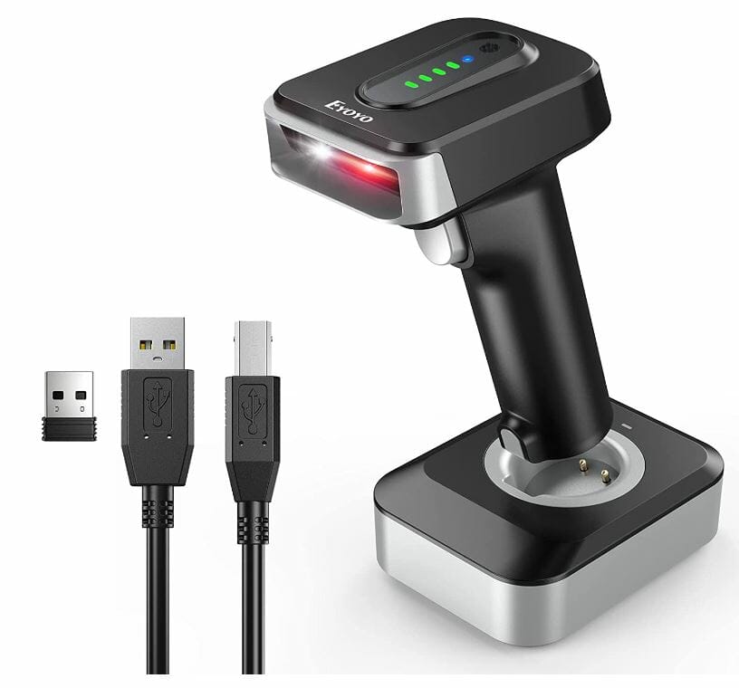- Der Eyoyo Barcode Scanner ist mit Ladegerät, Ständer und Empfänger und kann einfach zwischen 2.4G wireless & Bluetooth & USB kabelgebunden drei Arten von Verbindungsmodus wechseln. Eyoyo Scanner liefert bis zu 30m Übertragungsdistanz in barrierefreiem unter dem 2.4G drahtlosen Modus, bis zu 50m Übertragungsdistanz barrierefrei unter dem Bluetooth-Modus