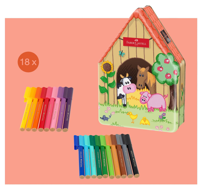 FABER-CASTELL Filzstifte 18er Set Metallbox Bauernhof für nur 6,49€ bei Prime-Versand