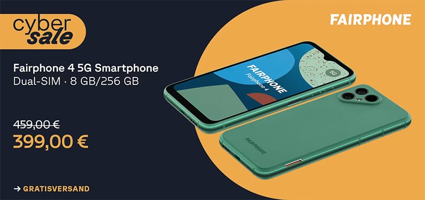 Cyberport verkauft heute im Cybersale das Fairphone 4 Smartphone für nur 399€ inkl. Versand.
