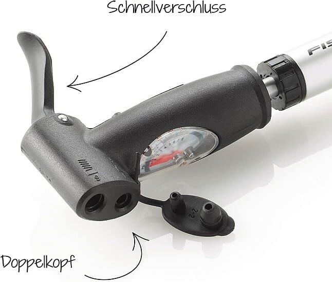 Fischer Mini Fahrrad-Doppelhubpumpe – für alle Ventile (AV, DV, SV) für 5€ (statt 12€)