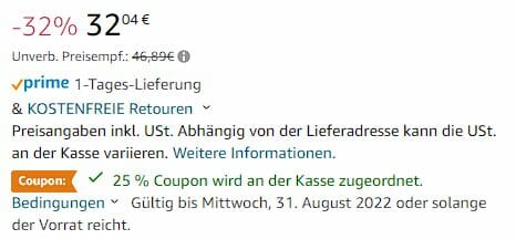 Auf den Preis kommt ihr durch den 25% Click-Coupon auf der Artikelseite.