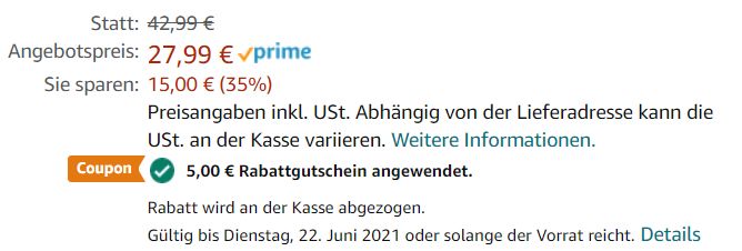 Auf den Preis gelangt ihr durch den Einsatz des 5,- Euro Rabattcoupons, den ihr auf der Artikelseite aktivieren könnt.