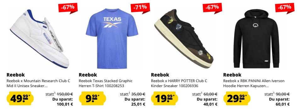 Großer Reebok Sale bei SportSpar mit bis zu 75% Rabatt