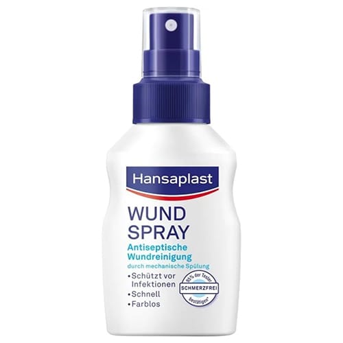 - Lieferumfang & Details – Hansaplast Wundspray (50) ml), für die Wundversorgung von Blasen, Schnitt-, Schürf- oder kleineren Brandwunden, mit 360° Sprühkopf