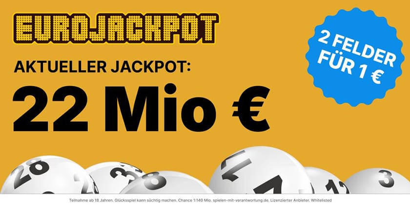 Heute 22 Mio. Eurojackpot – 2 Felder Eurojackpot für nur 1€ bei Tippland.de