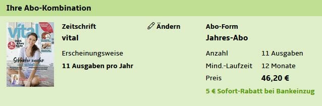 Jahresabo der Zeitschrift VITAL für 41,20€ und dazu verschiedene Gutscheine im Wert von bis zu 35€