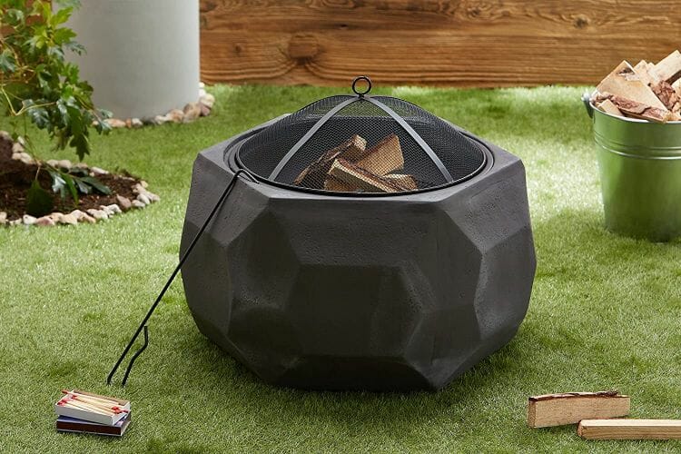 - Dekorative Feuerschale in attraktivem, kantigem Diamant-Design