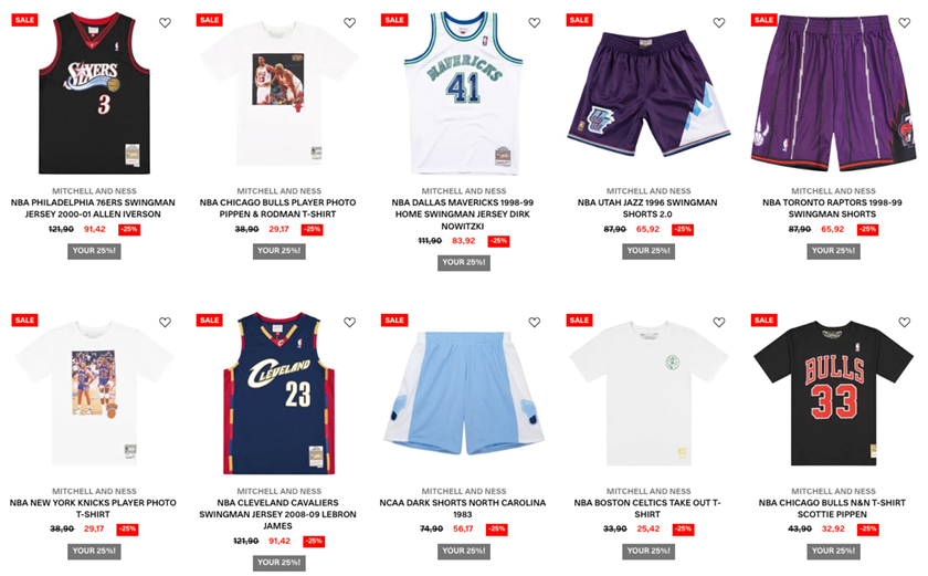 Im KICKZ Onlineshop bekommt ihr aktuell sehr gute 25% Extra-Rabatt auf über 280 ausgewählte Mitchell & Ness Artikel!