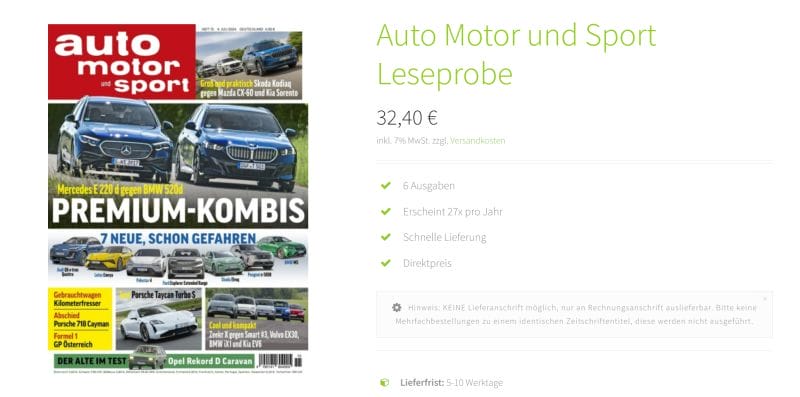 Knaller: Miniabo 6 Ausgaben Auto, Motor und Sport nur 6,95€ statt 32,40€ – keine Kündigung nötig!