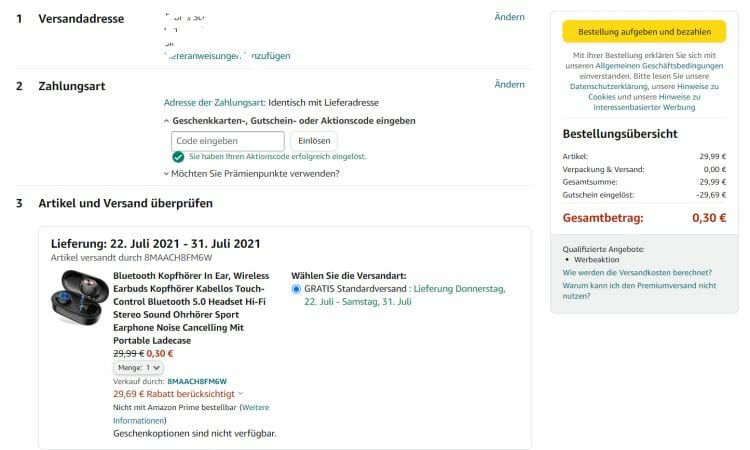 Scheinbar funktioniert es nur ein Mal pro Account und auch nur für Prime-Kunden.