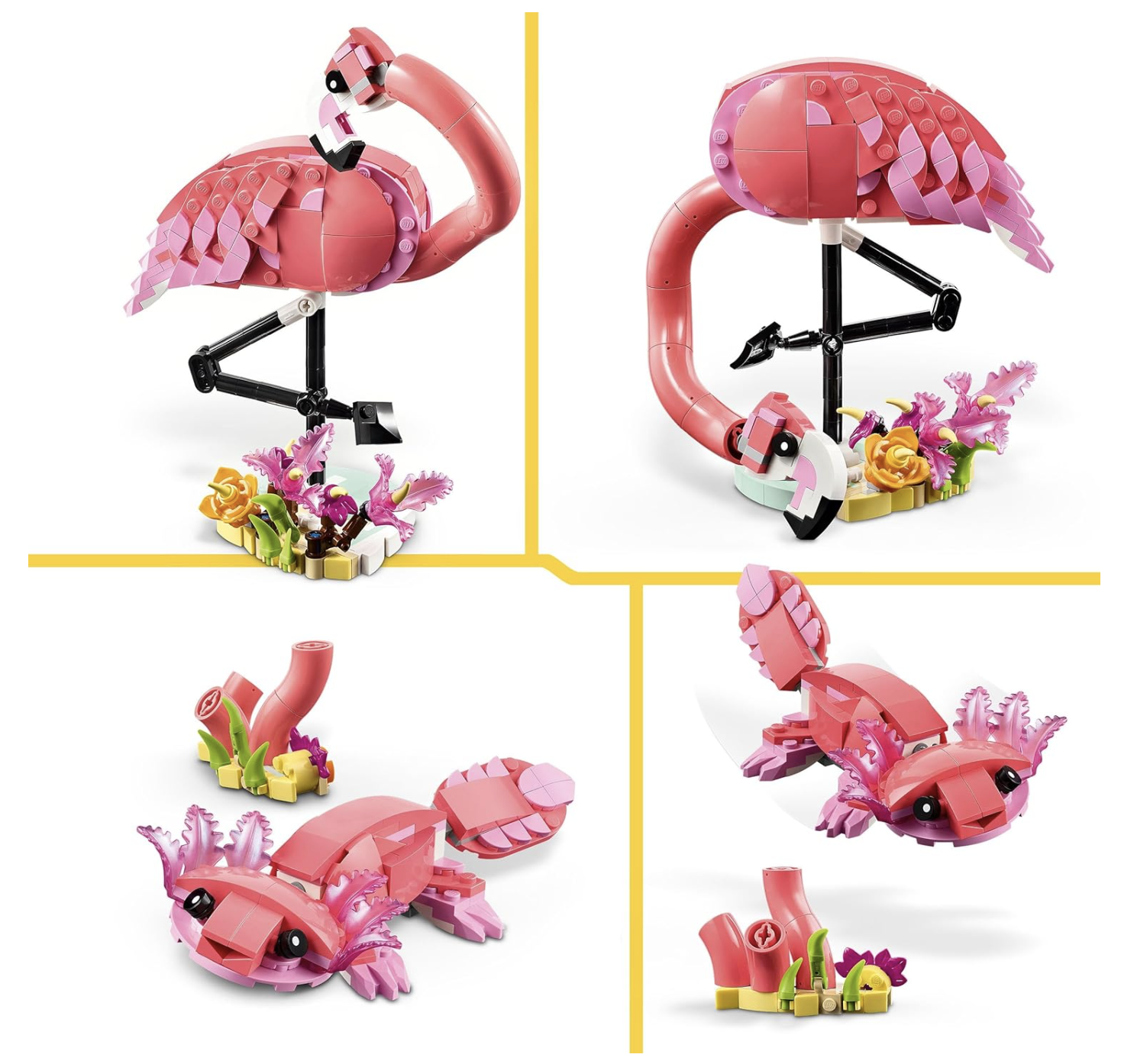 - Unzählige Spieloptionen: Modelle von 3 verschiedenen Tieren – ein rosa Spielzeug Flamingo, ein rosa Kakadu und ein rosa Axolotl – laden Kinder zu vielen Rollenspielen ein; Die Tierfiguren können jedoch nicht gleichzeitig gebaut werden
