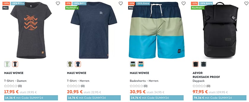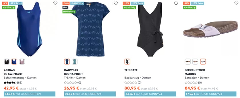 Alle Aktionsartikel sind entsprechend markiert. Den angegebenen Rabatt erhaltet ihr dann im Warenkorb mit dem Gutscheincode SUNNY24