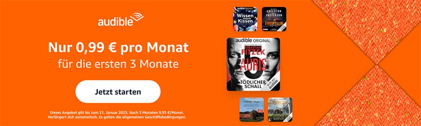 Aktuell könnt ihr 3 Monate audible für je nur 0,99€ im Monat testen – statt regulär 9,95€!