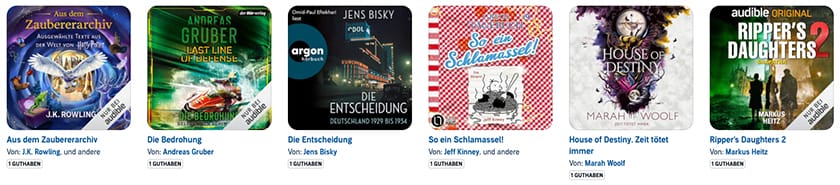 Hinweis: Nach Ablauf des Aktionszeitraums von 6 Monaten kostet das Audible Abo 9,95€/Monat. Das Angebot gilt nur für Mitgliedschaften, die direkt über Audible.de abgeschlossen werden.