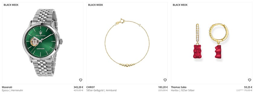 Im CHRIST Onlineshop bekommt ihr nur noch heute (02.12.2024) bis zu 50% Rabatt auf viele ausgewählte Schmuckstücke.