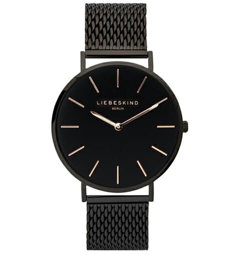 - Zweizeiger Damenuhr der Marke Liebeskind Berlin mit Edelstahlgehäuse und hochwertigem Edelstahl Mesharmband. Sie verspricht nicht nur gute Tragekomfort, sondern verleiht Ihnen in jedem Outfit ein einzigartiges Gefühl. Besonders die rosègoldenen Indexe auf der sonst schwarzen Uhr veredeln das Accessoire