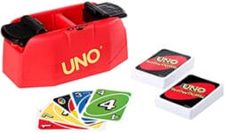 - UNO Showdown erleben das allseits beliebte UNO mit zusätzlichen Überraschungsangriffen aus dem Showdown Gerät.