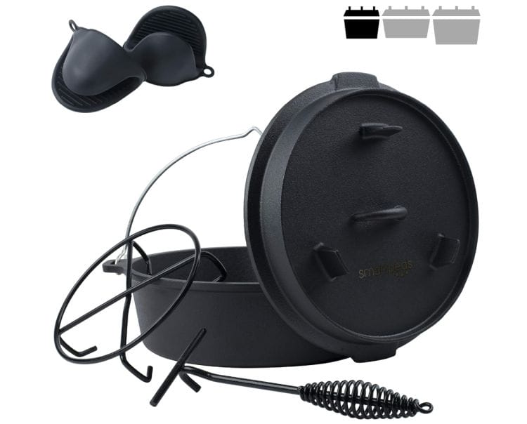 • Das Material für den Dutch Oven Gasgrill ist vorbehandelt und schon fertig eingebrannt.