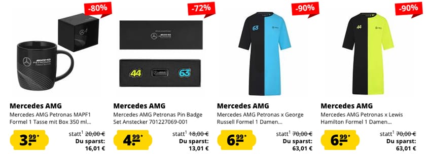 Bei SportSpart läuft die Mercedes AMG Petronas Formel 1 Team Sale mit bis zu 90% Rabatt!