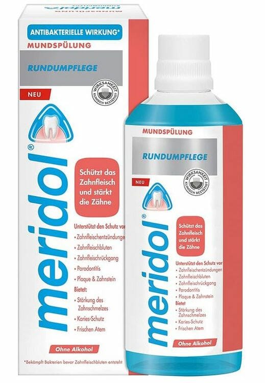 - meridol Rundumpflege Mundspülung beruhigt empfindliches Zahnfleisch und schützt schmerzempfindliche Zähne