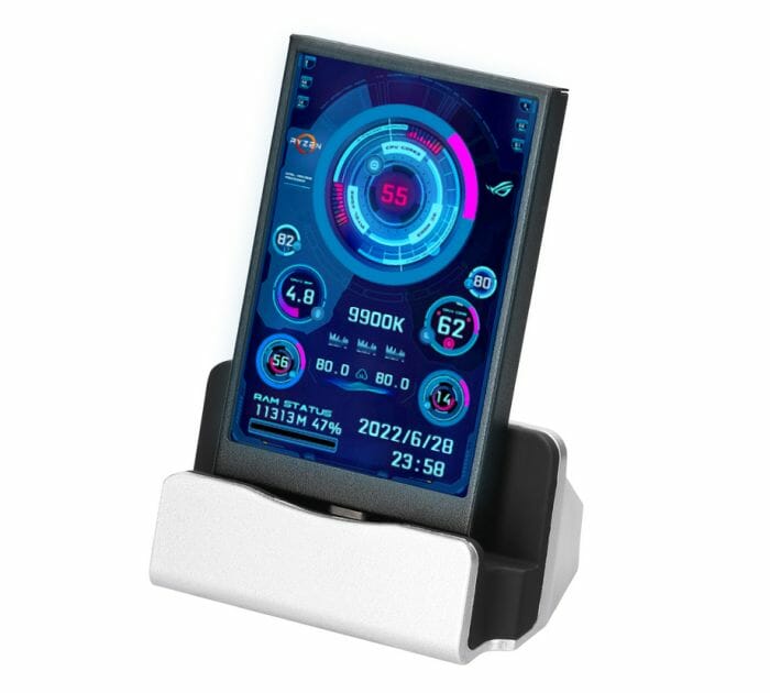 Geliefert wird das 3,5″ Display mit einem Ständer und USB-Kabel. Per Software lässt sich einstellen, welche Daten angezeigt werden sollen.