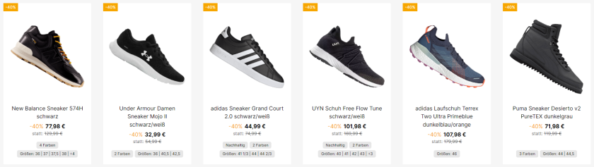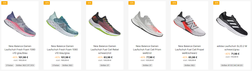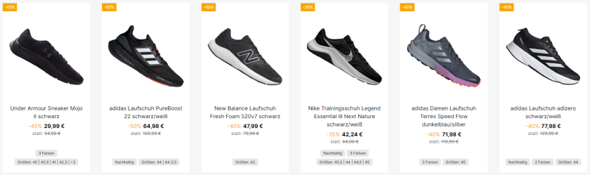 Im Angebot sind viele verschiedene Modelle von z.B. New Balance, Under Armour und Adidas.