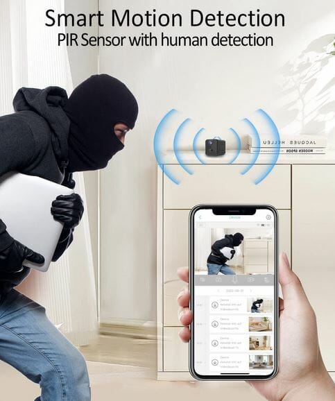 - Diese mini überwachungskamera ist die derzeit kleinste Kamera auf dem Markt mit PIR-Funktionalität, die die Bewegung von Personen und Objekten in Echtzeit erfasst. Wenn die Kamera eine Bewegung wahrnimmt, sendet sie Ihnen sofort einen Alarm über die mobile App. Gleichzeitig werden alle Alarmvideos auf einer Speicherkarte oder in der Cloud gespeichert