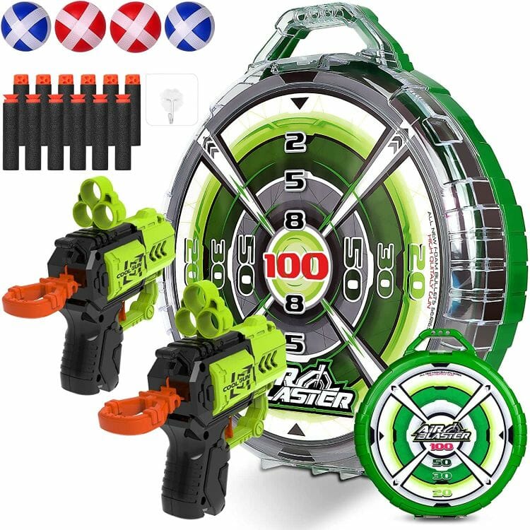 - Enthält 2 Pistolen, 12 Schaumstoffpfeile, 4 Schaumstoffbälle und eine Zielscheibe