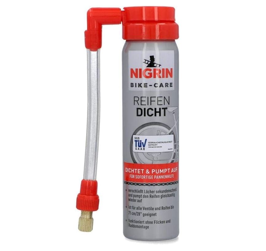 - SCHNELL: Die sofortige Pannenhilfe NIGRIN BIKE-CARE Reifendicht verschließt in sekundenschnelle Löcher bis 3 mm ø im Reifen und pumpt ihn wieder auf.