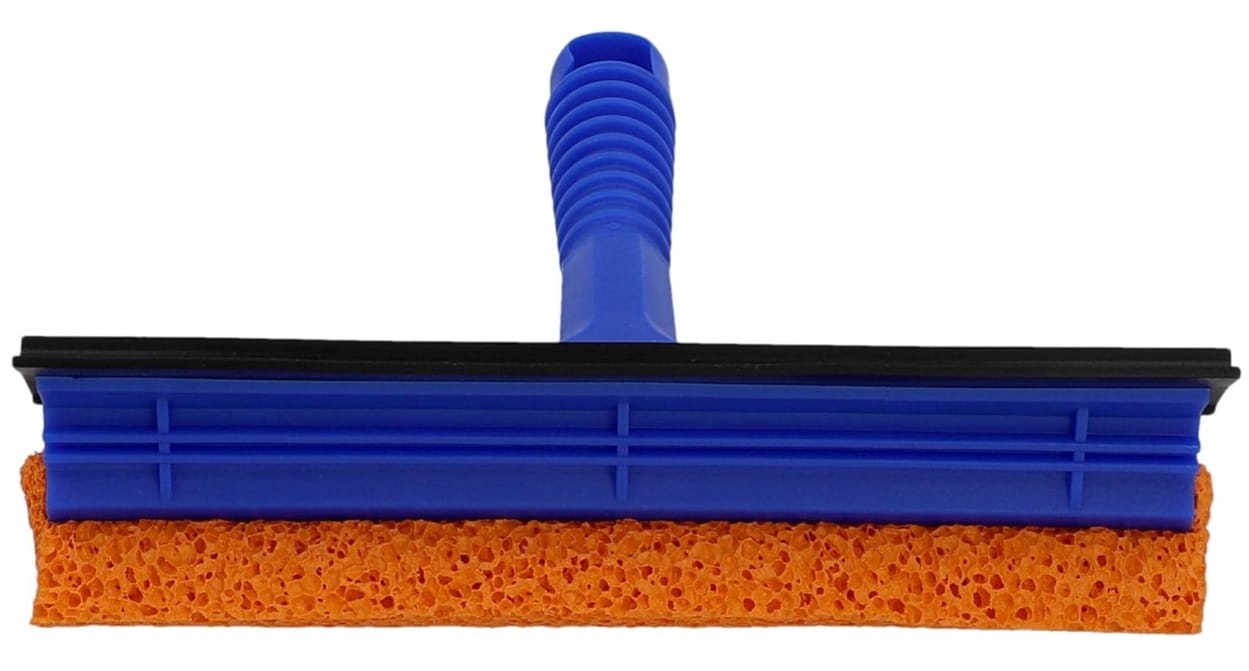- Mit Kunststoff-Griff und Gummischwamm