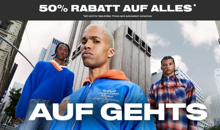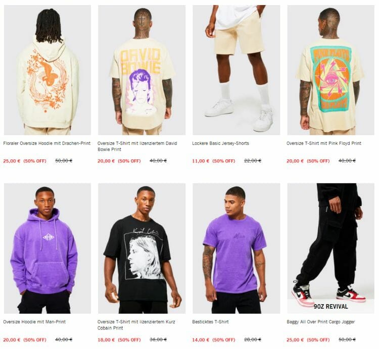 Beim Klamottenshop boohooMAN gibt es nur noch heute satte 50% Rabatt auf alle Artikel außer Sale Angebote.