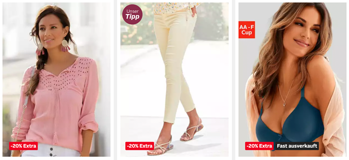 Zur Auswahl stehen euch auf der Aktionsseite über 2.500 verschiedene Produkte für Damen. Mit von der Partie sind neben Oberteilen, Hosen und Jacke auch viele Dessous und Bademode.