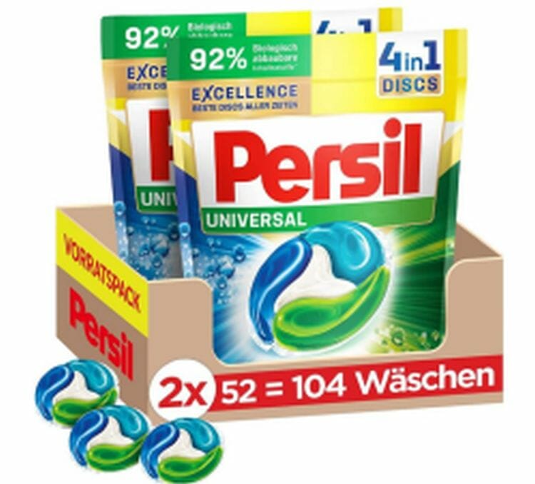 Bei Amazon gibt es derzeit die Persil Universal DISCS 4-in-1 104 Waschladungen Vollwaschmittel mit Tiefenrein-Plus für 28,07€ im Spar-Abo