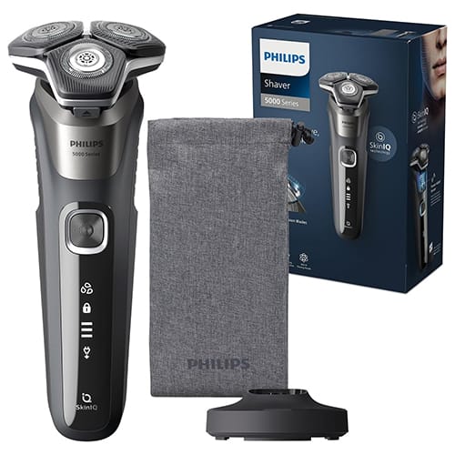 - Weiche Haut: Der S5000 mit SkinIQ Technologie gleitet sanft über Ihre Haut und schneidet dank der 45 selbstschärfenden SteelPrecision Klingen jedes Haar gründlich – selbst bei 3-Tage-Bärten