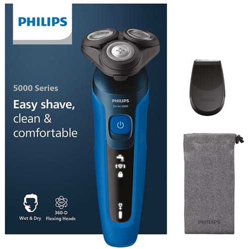 - Lieferumfang: 1 Series 5000 Nass- & Trockenrasierer, 1 integr. Trimmer, 1 Beutel, 1 Ladekabel