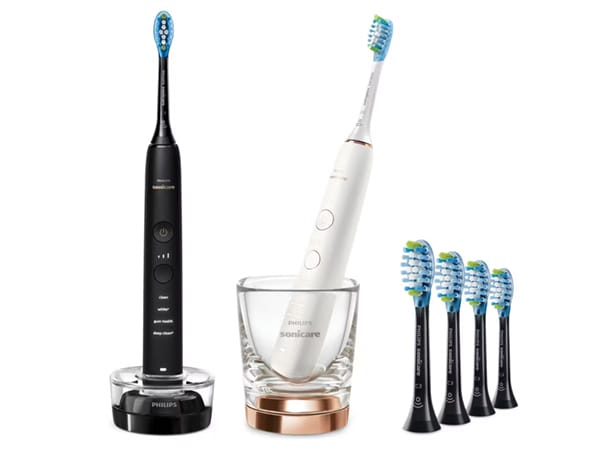 - Lieferumfang: 2x DiamondClean 9000 Handgriff, 6x Premium-Bürstenkopf (Plaque Defense), Glas zum Aufladen, Ladestation