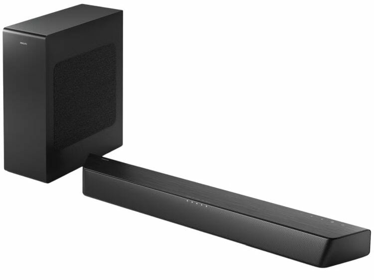 Im Preisvergleich gibt es die Philips Soundbar mit 2.1 Wireless Subwoofer TAB7207-10 sonst ab 224,99€ – ihr spart also 70,04€.