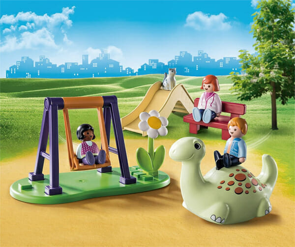 - Lieferumfang: 1x PLAYMOBIL 1.2.3 Spielplatz, 10-teiliges Spielfiguren-Set mit Anleitung: 1 Rutsche, 1 Schaukel-Dino, 1 Schaukel, 3 PLAYMOBL 1.2.3 Figuren, 1 PLAYMOBIL Tier, 3 Zubehörteile, Material: BPA-freier Kunststoff