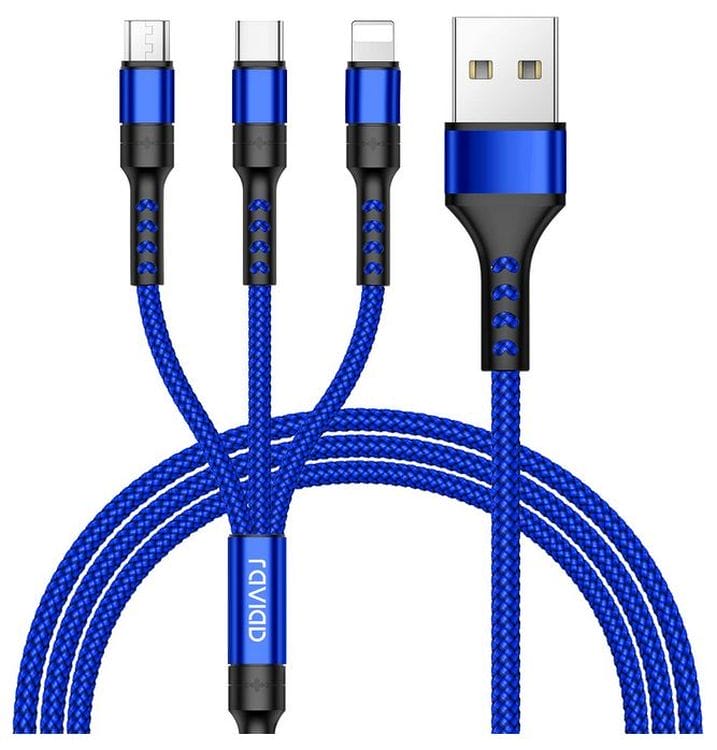 RAVIAD 3in1 mehrfach Ladekabel mit Micro USB-C & Lightning in Blau für nur 5,07€ (statt 6,99€)