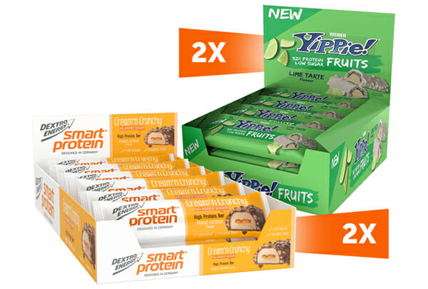 Riegel-Deal: 24x Dextro Energy Cream´n Crunch + 24x YIPPIE! Bar Fruits Lime Tarte für 39,62€ (statt 122€)