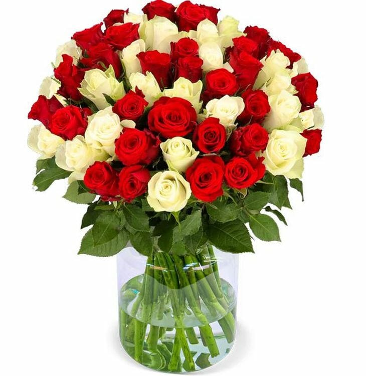 - Inhalt: 50 Rosen in Rot & Weiß (40-50cm)