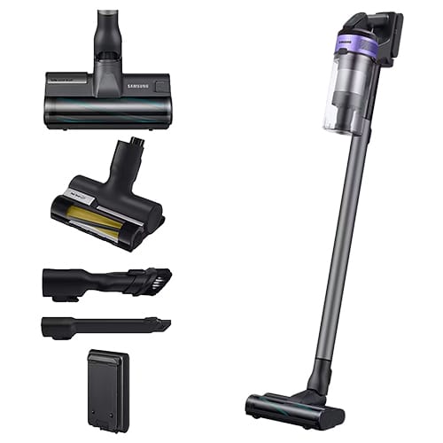 - Lieferumfang: Samsung Jet 75E, Turbo-Action-Bürste, Pet Tool, 2-in-1-Zubehör, Fugendüse, 2-in-1-Ladestation, Bedienungsanleitung