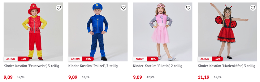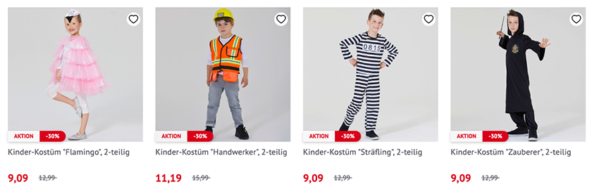 Satte 30% Rabatt auf Faschingskostüme für Kinder im NKD Onlineshop