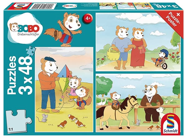 Schmidt Spiele Bobo Siebenschläfer „Auf ins Abenteuer“ Kinderpuzzles (3 x 48 Teile) für nur 7,15€ (statt 11,70€)