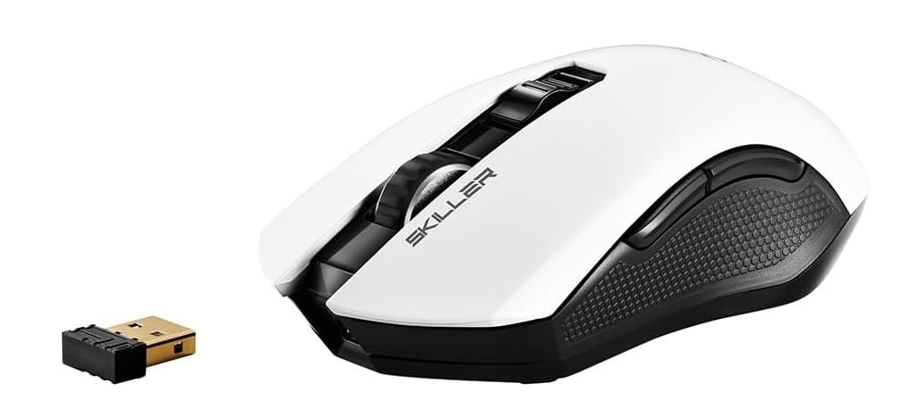 • DUALE KONNEKTIVITÄT: Die SKILLER SGM3 kann entweder kabelgebunden oder drahtlos über eine 2, 4-GHz-Funkverbindung betrieben werden. Für den kabelgebundenen Betrieb liegt ein textilummanteltes Kabel mit USBStecker bei, für den drahtlosen Betrieb ein Nano-Empfänger mit USB-Stecker.